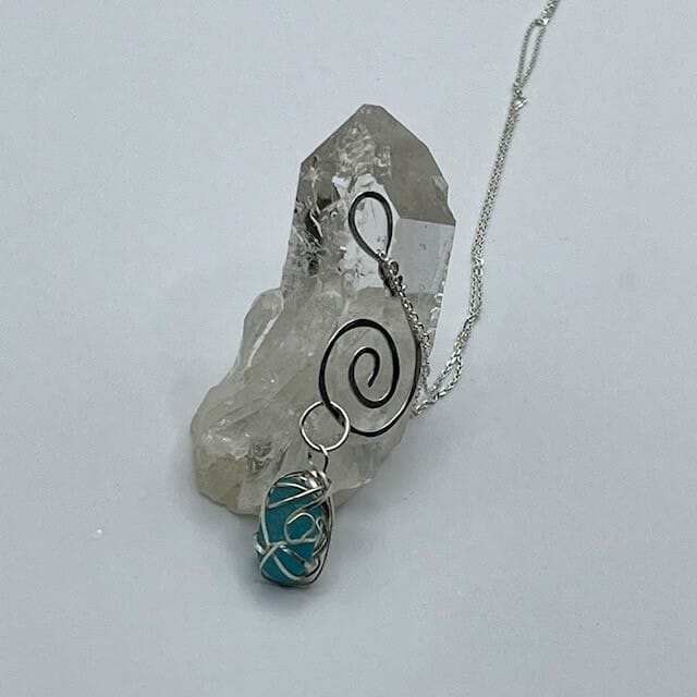 Be the first to review “Aqua Sea glass necklace wire wrap swirl” Cancel reply